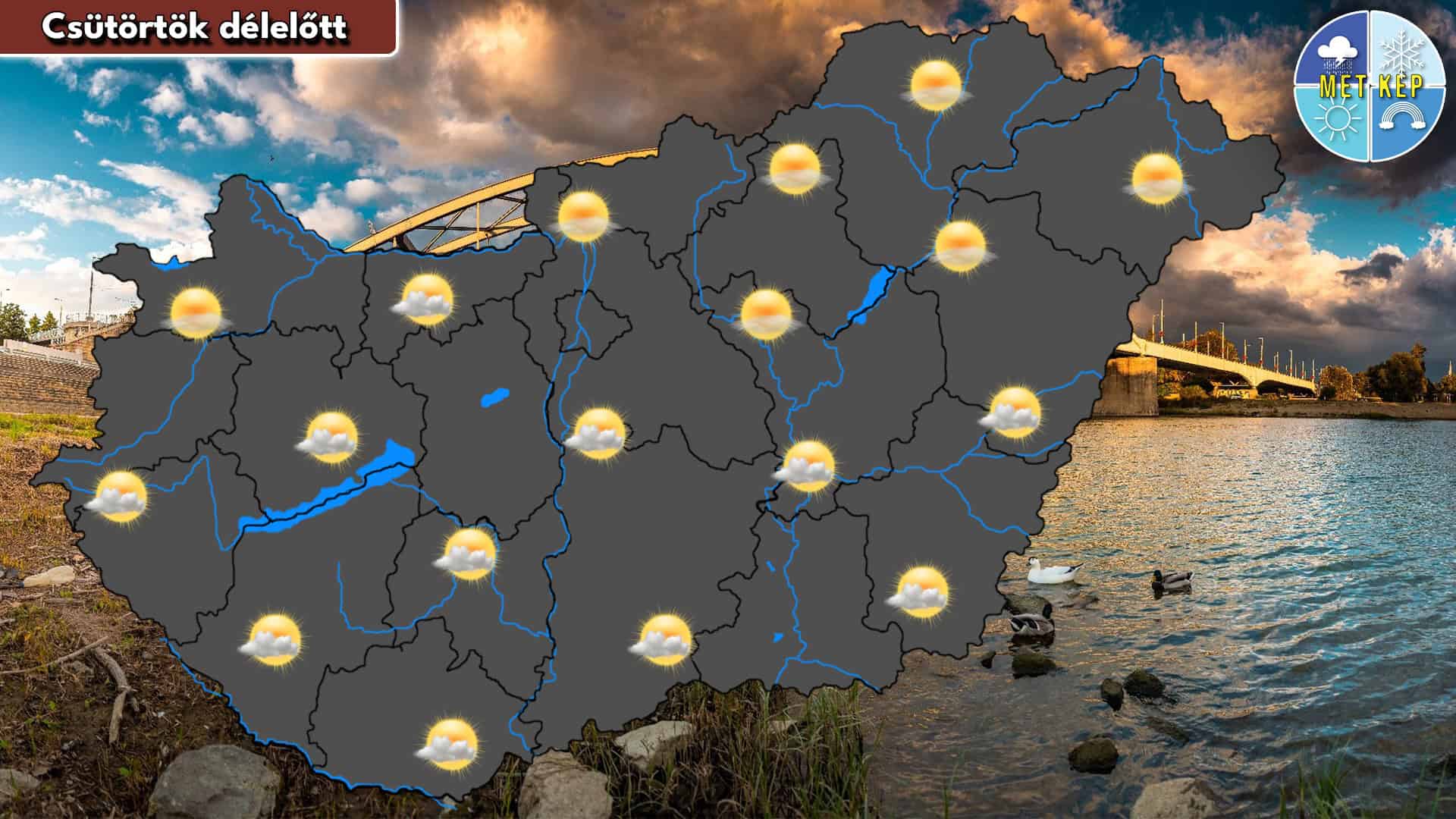 Az ország nagy részén gyengén vagy közepesen felhős égbolt várható. Élénk, néhol erős széllökések kísérhetik a napot.