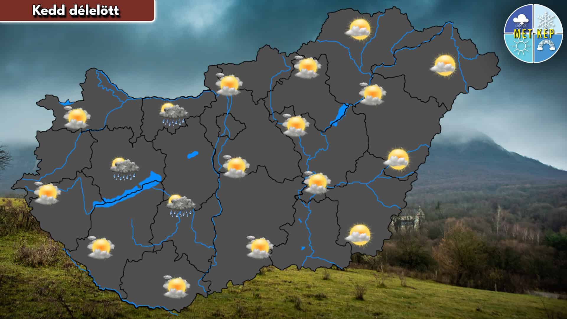 Közepesen, illetve erősen felhős égbolt várható. A Dunántúlon elszórtan kialakulhat futó záporeső. A szél többnyire mérsékelt marad, de a Dunántúlon élénkebb légmozgás is előfordulhat.