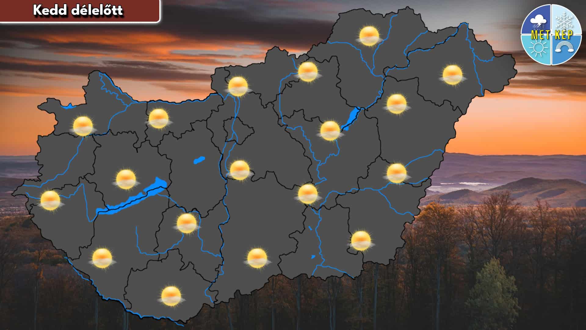 A délelőtt folyamán az ország nagy részén derült, gyengén felhős idő várható. Az északnyugati szél mérsékelt lesz.