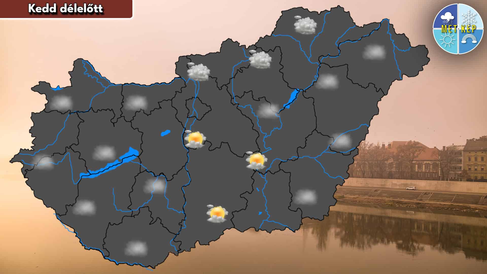 A reggel folyamán sokfelé pára és ködfoltok nehezíthetik a látási viszonyokat. A délelőtti órákban többnyire erősen felhős, borult lesz az ég. Helyenként mérsékelt lesz a légmozgás.