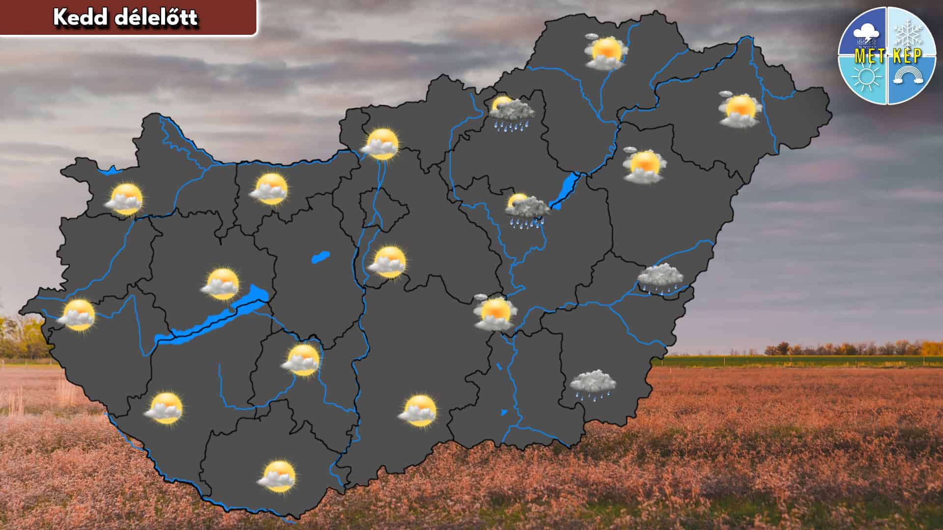 A Dunántúlon és a középső országrészben derült, gyengén felhős idő valószínű, máshol közepesen vagy erősen felhős lesz az ég. Keleten egy összeáramlási zóna mentén helyenként futó záporesők alakulhatnak ki. Többfelé mérsékelt, néhol élénk lesz a légmozgás. A legmagasabb hőmérséklet 4 és 9 fok között alakulhat.