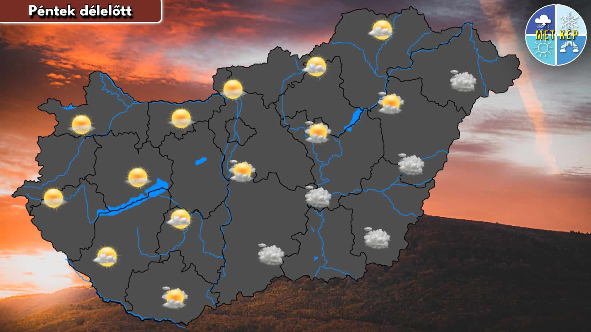 Északon és északnyugaton derült vagy gyengén felhős idő várható, míg délkelet felől fokozatosan megnövekszik a felhőzet, délkeleten már inkább borult lesz az ég. A szél többnyire mérsékelt lehet.