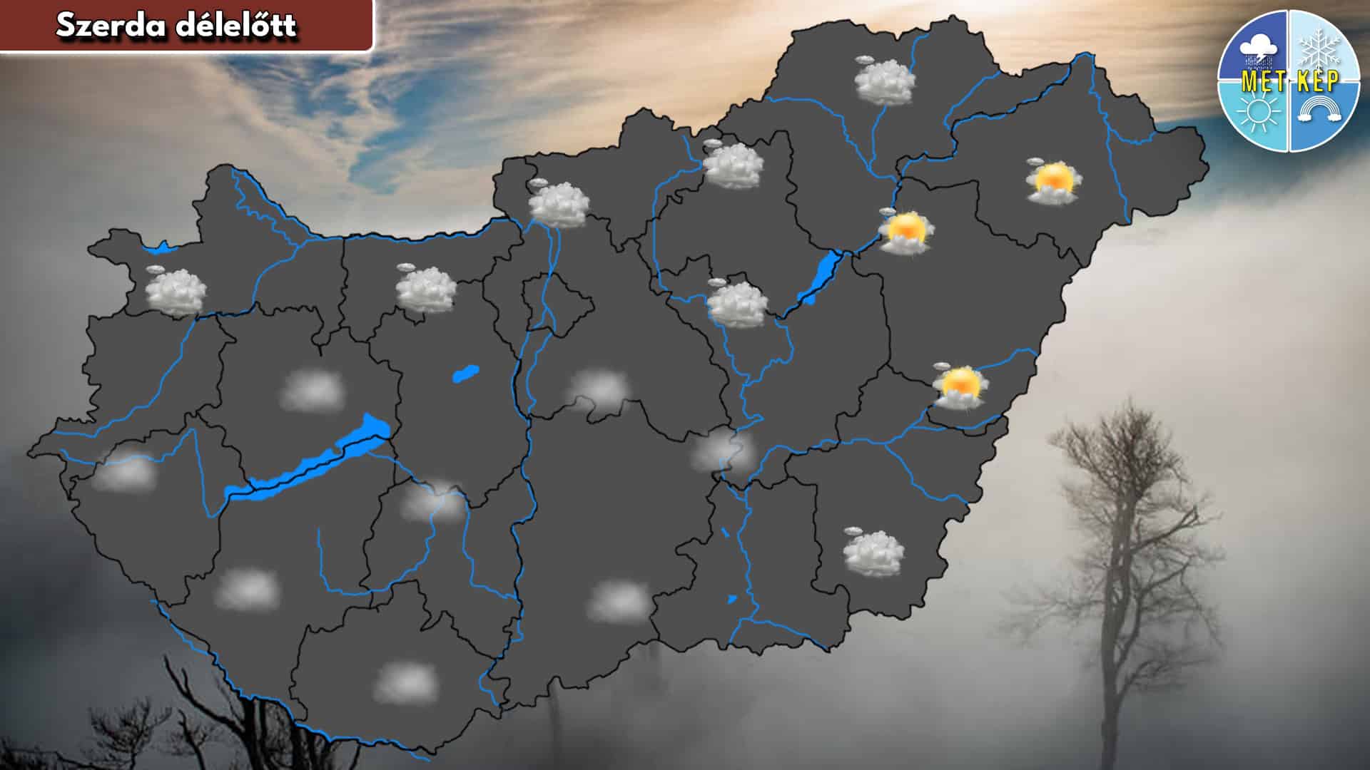 Többnyire erősen felhős, borult idő ígérkezik. Többfelé pára és ködfoltok kialakulására számíthatunk. Északkeleten kisebb eső is előfordulhat, másutt inkább szitálás valószínű. A minimum hőmérséklet -1 és +6 fok között alakulhat.