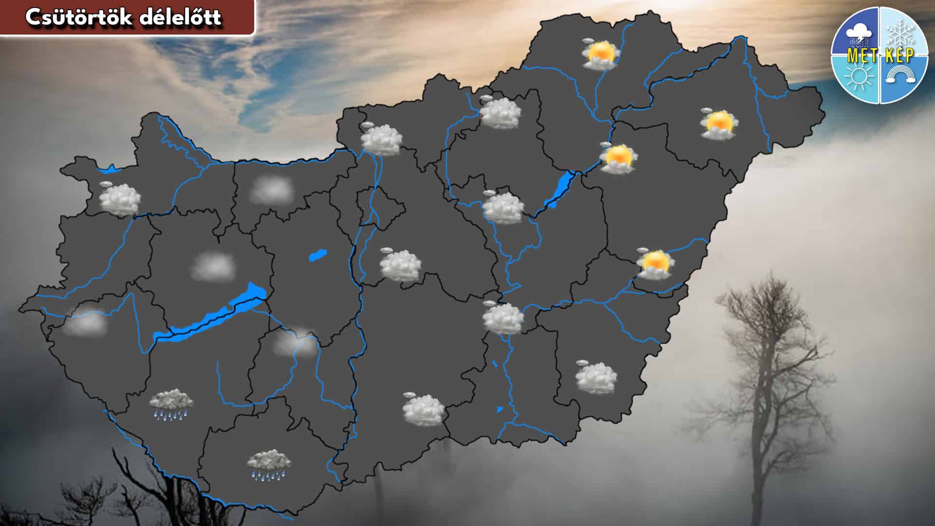 Többnyire erősen felhős, borult idő várható, helyenként pára és ködfoltok kialakulásával. Délnyugaton már előfordulhat csapadék. A légmozgás általában mérsékelt lehet.
