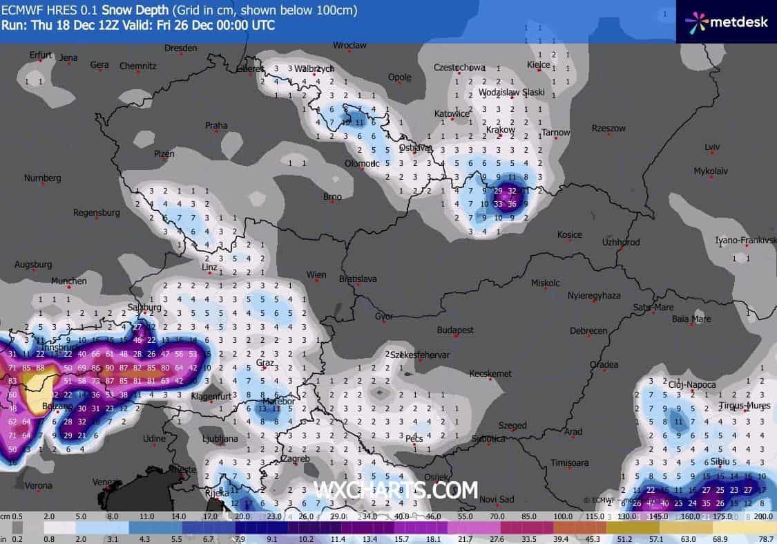 Konklúzió: felesleges egyelőre százalékokban gondolkodni, viszont reményteljes, hogy már egy héten belül vagyunk és egyre többször, több eséllyel jelenik meg a hó a térképeken. Még a végén idén karácsonyi csoda történik?