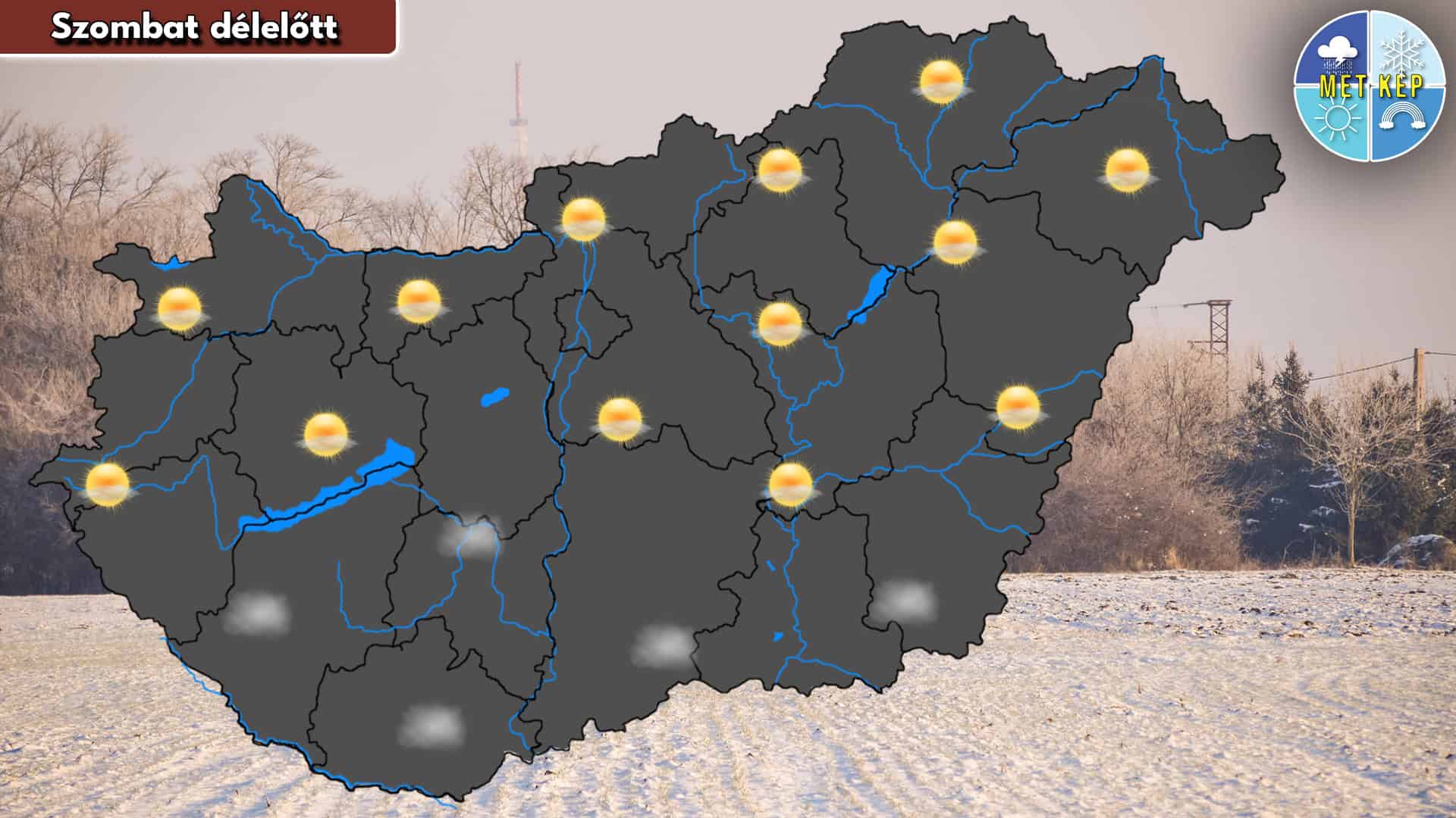 A reggeli és a kora délelőtti órákban az ország nagy részén derült, gyengén felhős idő várható. A déli, délnyugati tájakon pára és ködfoltok is megjelenhetnek, helyenként zúzmarás köd is kialakulhat. A délutáni órákra a köd csak lassan oszlik fel. Délen és északkeleten közepesen, helyenként erősen felhős lehet az ég. Napközben általában mérsékelt lesz a légmozgás. A legmagasabb hőmérséklet -2 és +4 fok között alakulhat.