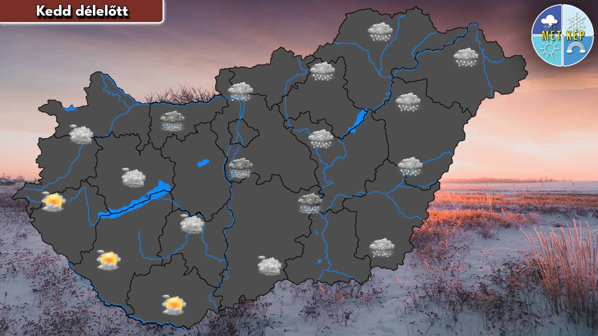 Délnyugat kivételével az ország nagy részén csapadék várható. Északon és északkeleten főként havazásra lehet számítani, míg délnyugat felé haladva a csapadék havas esővé, átmenetileg akár ónos esővé is válhat. A légmozgás többnyire mérsékelt lesz, helyenként élénkebb széllökések is előfordulhatnak. A legmagasabb hőmérséklet +5 és -10 fok között alakul, az enyhébb idő a délnyugati tájakon, míg a hidegebb az északkeleti országrészben valószínű.