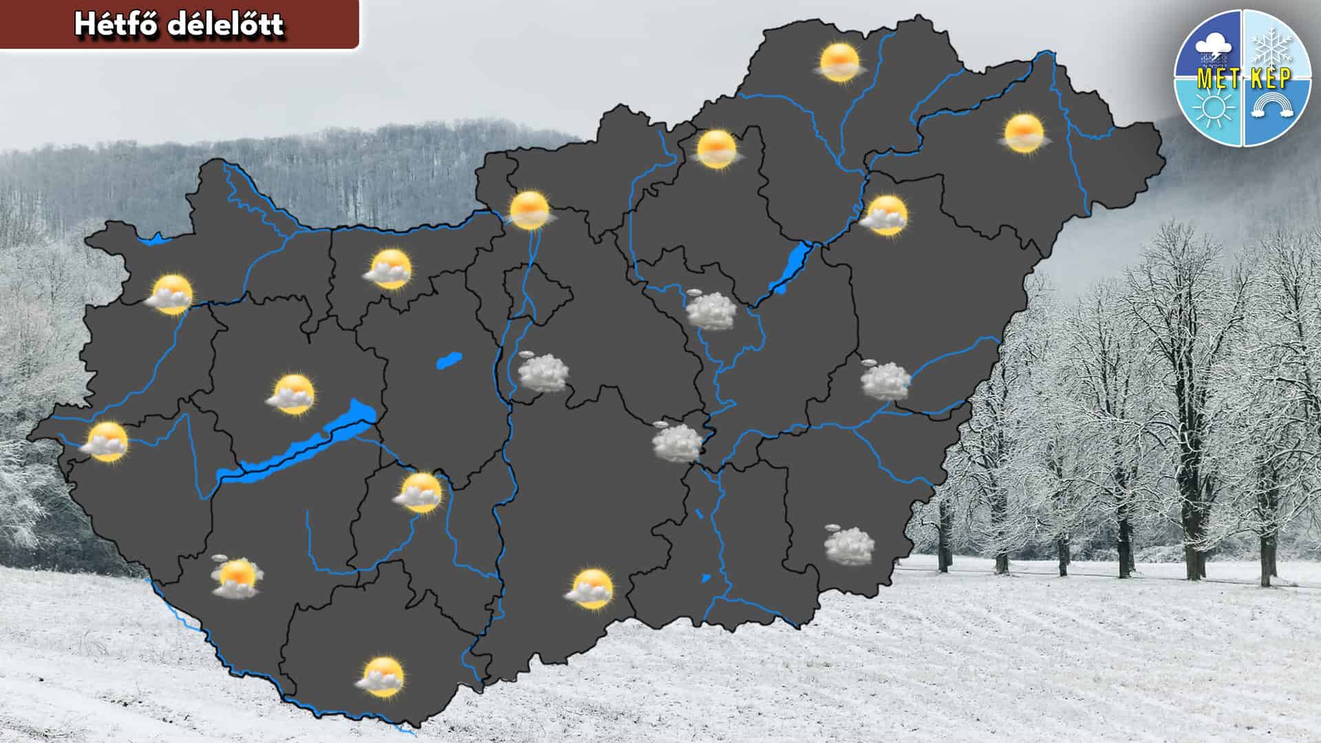 Reggel és a kora délelőtti órákban sokfelé ködös, borult idő valószínű. Délutánra már változó felhőzetre számíthatunk, az Alföldön azonban továbbra is előfordulhatnak felhősebb területek. A ködös tájakon ködszitálás is előfordulhat, illetve zúzmara is képződhet. A Dunántúlon többnyire mérsékelt légmozgás kíséri a napot. A legmagasabb hőmérséklet +1 és -6 fok között alakulhat.