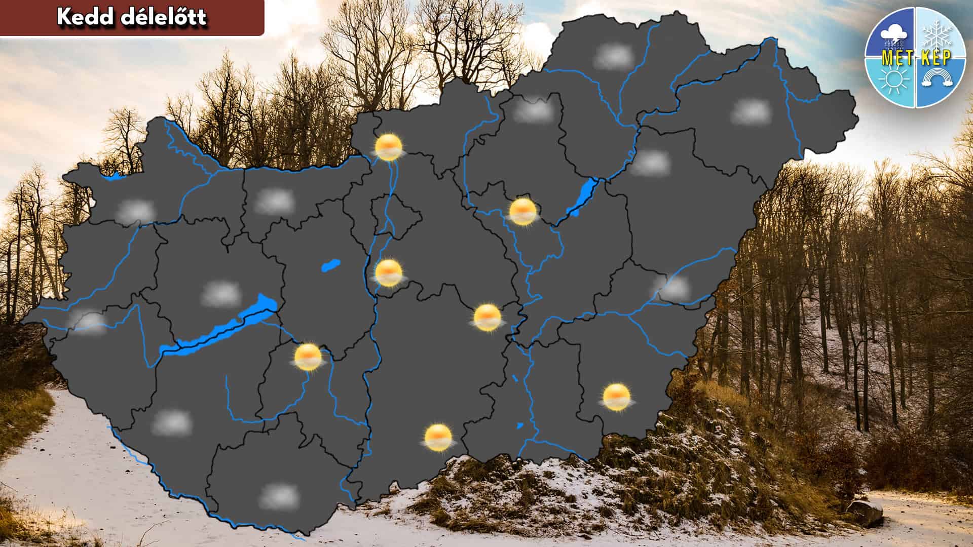 A reggeli, kora délelőtti órákban még többfelé kialakulhat pára és köd, napközben azonban fokozatosan megszűnnek. A középső országrészben akár több órára is kisüthet a Nap, máshol inkább változó felhőzet lesz jellemző. A légmozgás többnyire mérsékelt lehet. A legmagasabb hőmérséklet +3 és +10 fok között alakulhat.