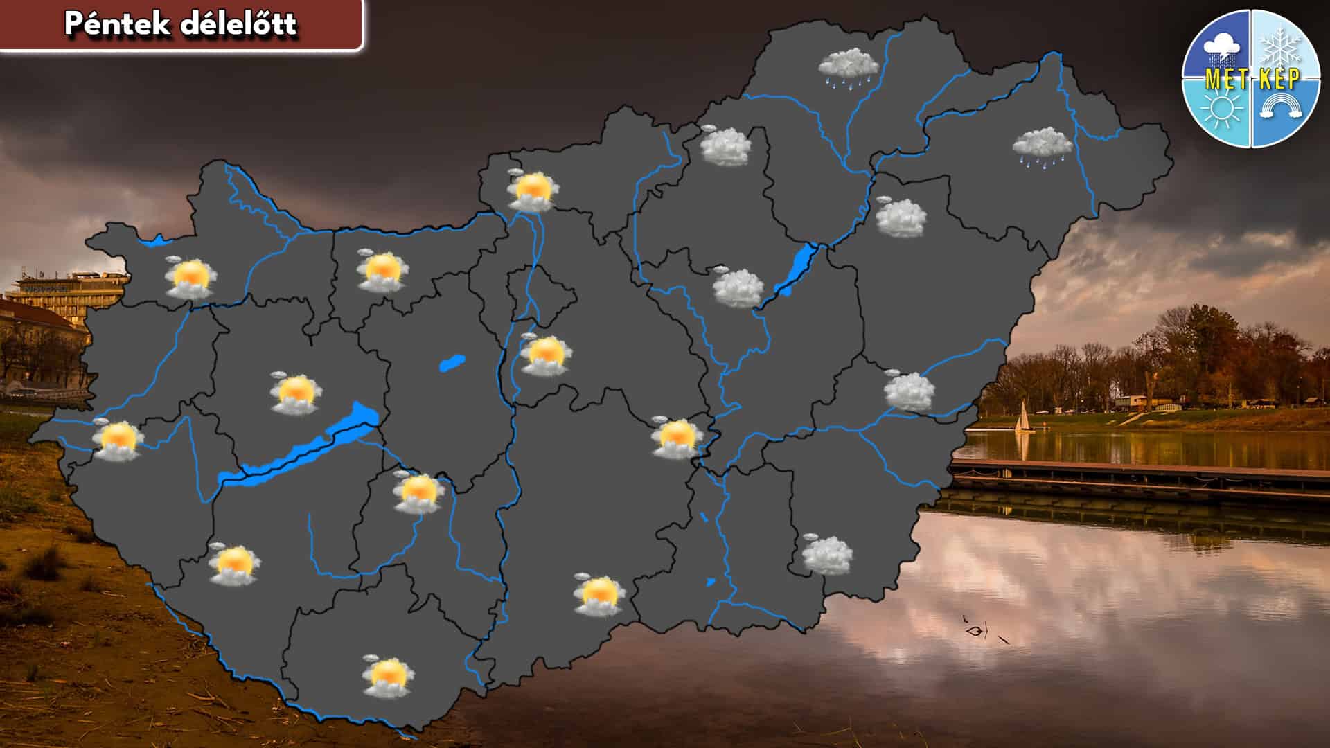 Eleinte északkeleten még előfordulhat kisebb eső, zápor, majd napközben változóan felhős lesz az ég. Délutáni órákban délnyugaton alakulhat ki futó záporeső. Mérsékelt, illetve élénk, a Bakony térségében erős lesz az északnyugati légmozgás. A legmagasabb hőmérséklet +8 és +16 fok körül alakulhat.