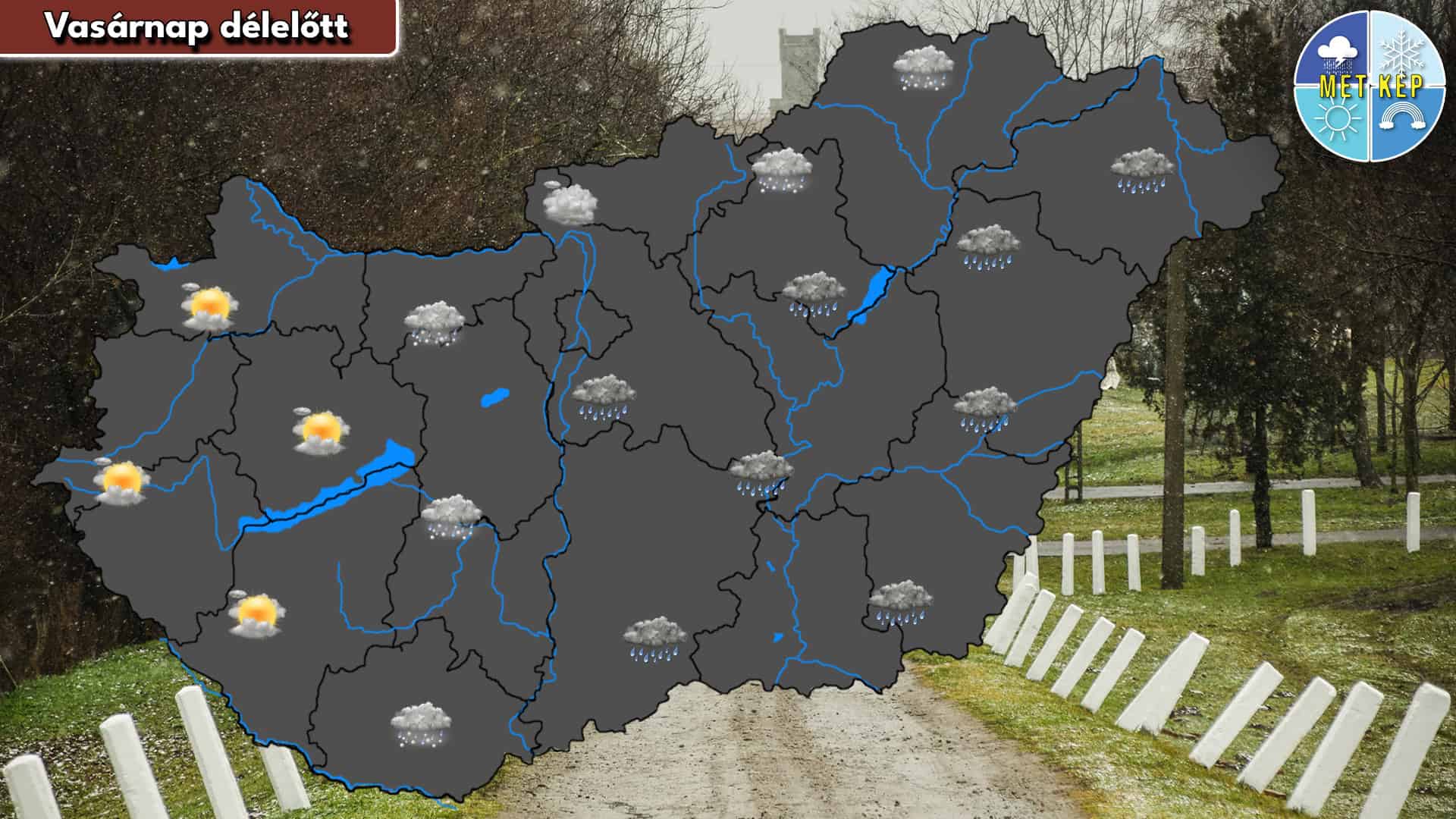 Eleinte többnyire erősen felhős, borult időre számíthatunk, és sokfelé eső is előfordulhat. Ahogy a hideg levegő egyre inkább teret nyer, a csapadék fokozatosan havas esőbe, helyenként havazásba válthat. Napközben nyugat, északnyugat felől szakadozni kezd a felhőzet. Sokfelé erős, a Dunántúlon és északkeleten viharos széllökések is kialakulhatnak. A legmagasabb hőmérséklet -2 és +7 fok között alakulhat.