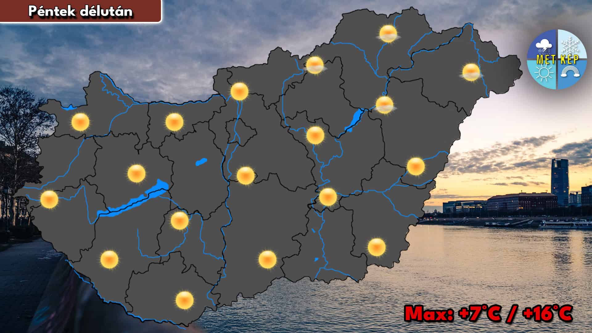 Jobbára derült, gyengén felhős lesz az ég. Helyenként mérsékelt lesz a légmozgás. A legmagasabb hőmérséklet +7 és +16 fok között alakulhat.