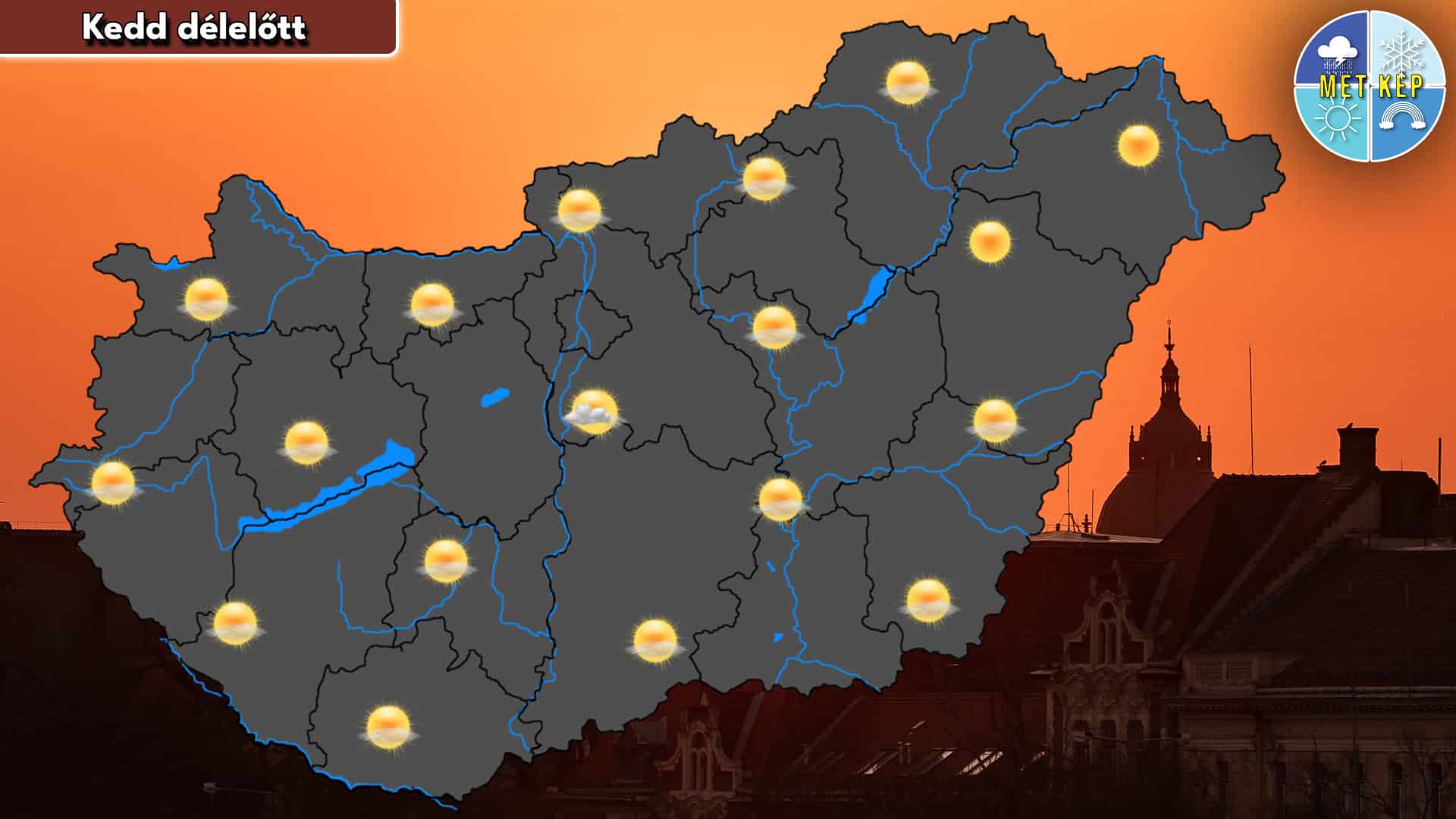 A középső országrész fölé átmenetileg több felhő sodródhat. Egyes helyeken mérsékelt légmozgás fordulhat elő. A hajnali órákra a hőmérséklet -2 és +9 fok köré csökkenhet.