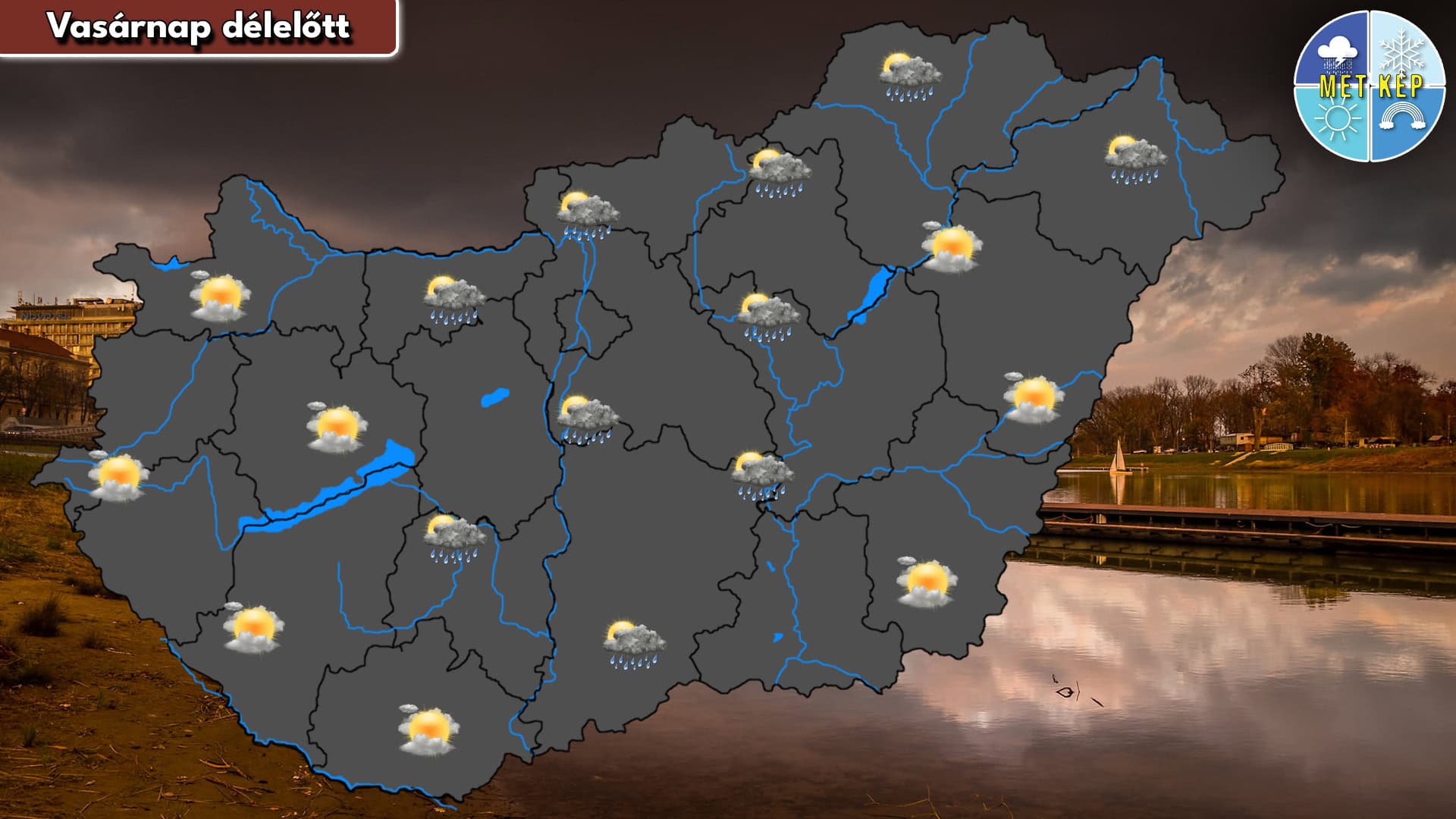 Többnyire erősen felhős, borult ég várható. Eső, zápor továbbra is előfordulhat. A Dunántúlon erős, helyenként viharos légmozgásra lehet számítani, míg a keleti tájakon mérsékelt, időnként élénk szél fújhat. A hőmérséklet +7 és +16 fok körül alakulhat.