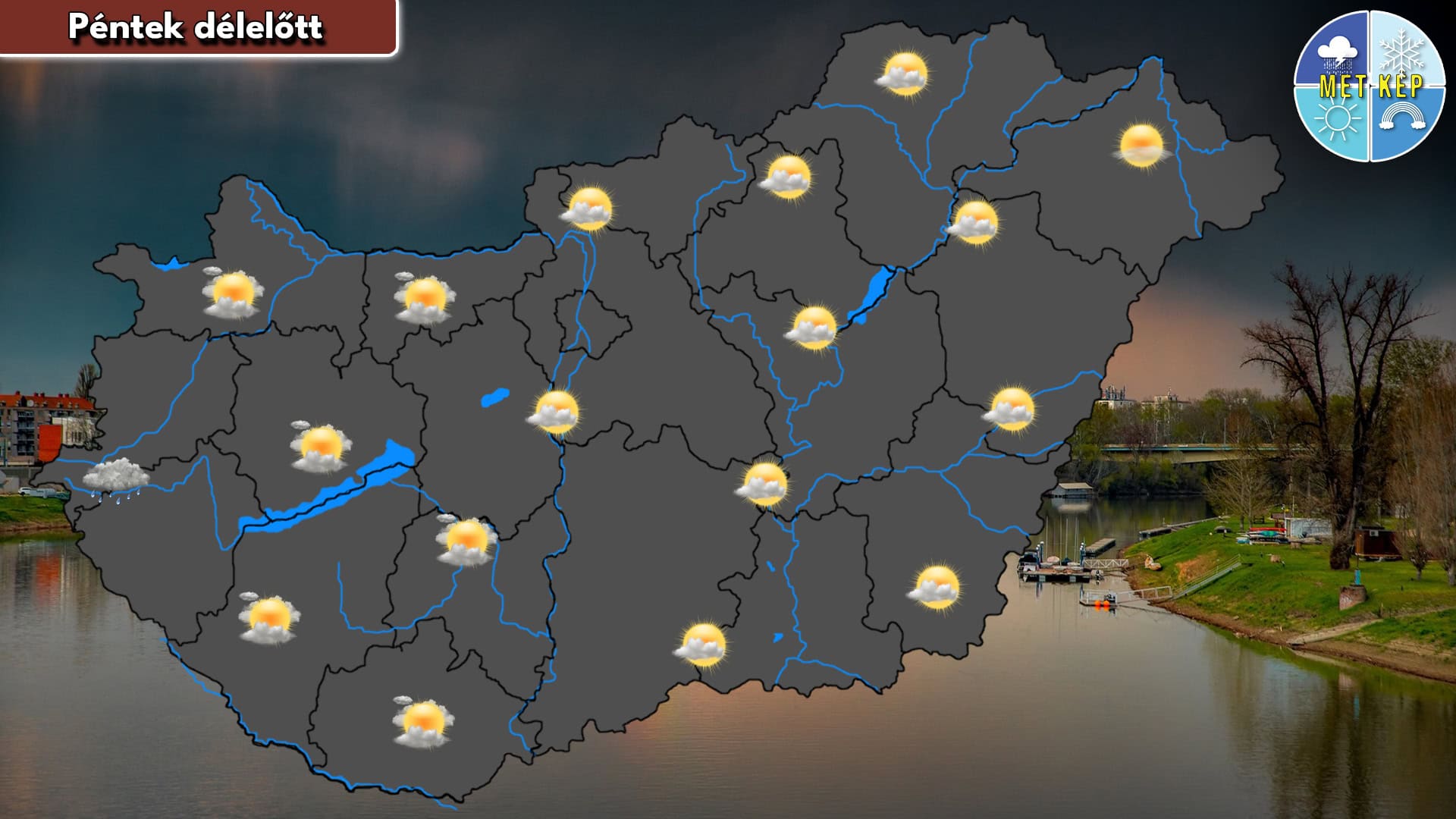 A Dunántúlon továbbra is erősen felhős, borult lesz az ég, itt eső, záporeső is előfordulhat. Keleten gyengén vagy közepesen felhős időre számíthatunk. Gyenge lesz a légmozgás. A hőmérséklet -3 és +8 fok közé csökkenhet.