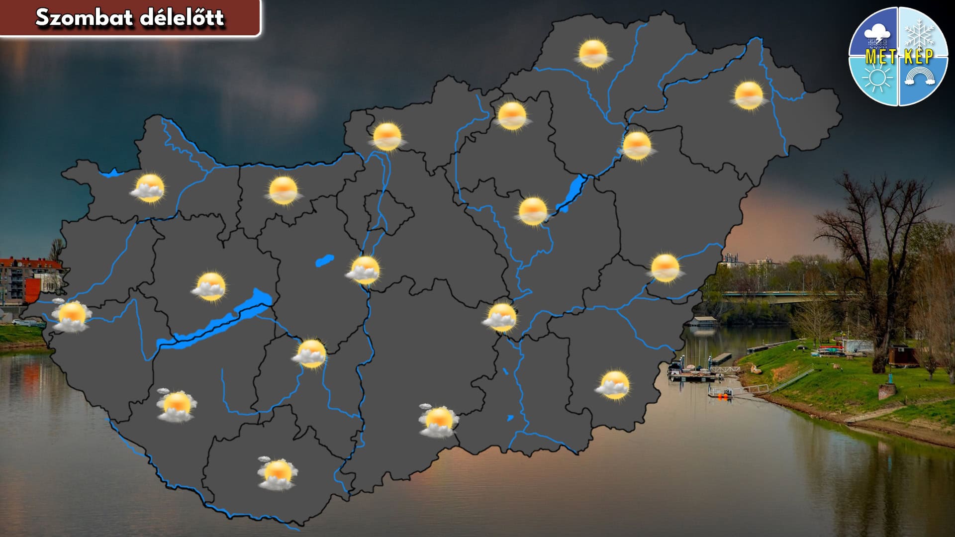 Változóan felhős idő várható, délután délnyugaton és északkeleten lehet több felhő. Helyenként futó zápor is kialakulhat. A légmozgás többnyire gyenge vagy mérsékelt lesz. A hőmérséklet +9 és +16 fok közé emelkedik.