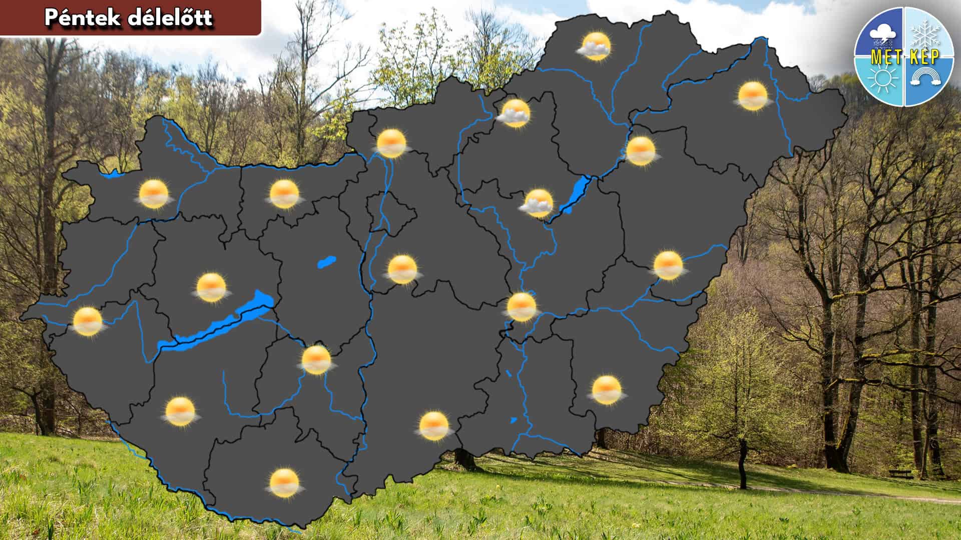 Az éjszaka folyamán többnyire derült, legfeljebb gyengén felhős lesz az ég. Helyenként mérsékelt légmozgás alakulhat ki. A hőmérséklet +3 és +13 fok közé csökkenhet.